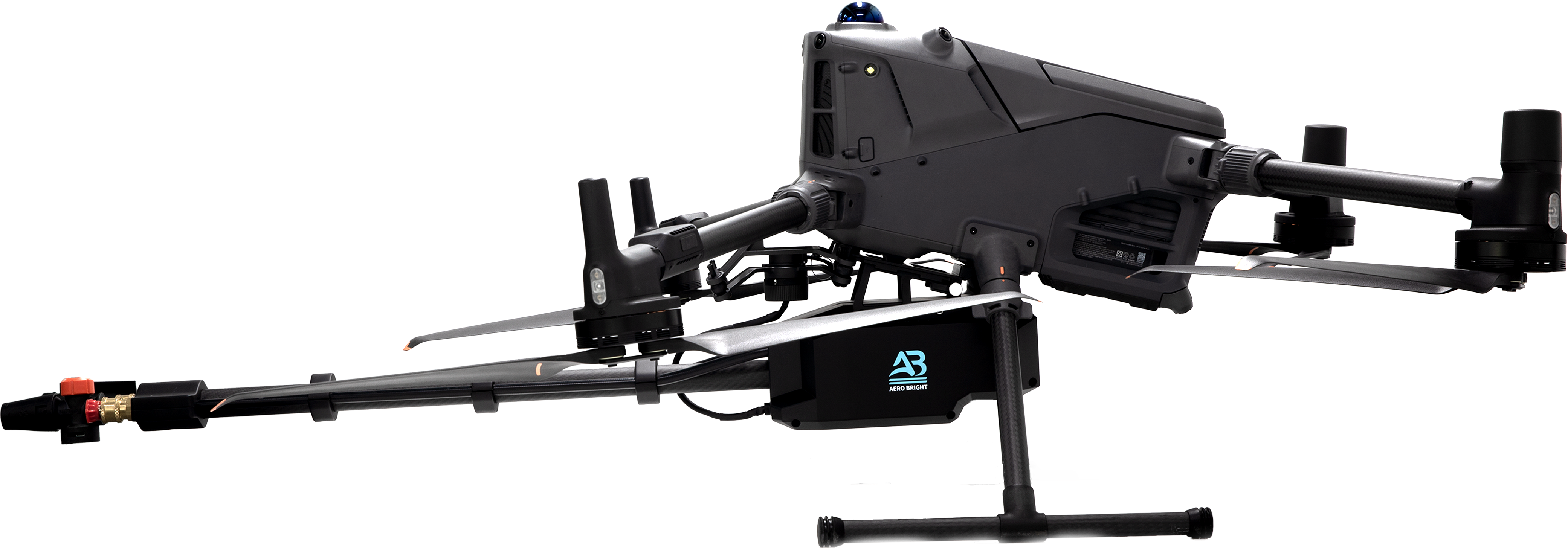 Built with a lightweight yet durable design, the Falcon X2 transforms the Matrice 400 into a powerful aerial cleaning solution capable of handling demanding maintenance operations at height. Its dual-nozzle configuration increases cleaning coverage and allows operators to switch spray angles and cleaning modes directly from the drone controller.