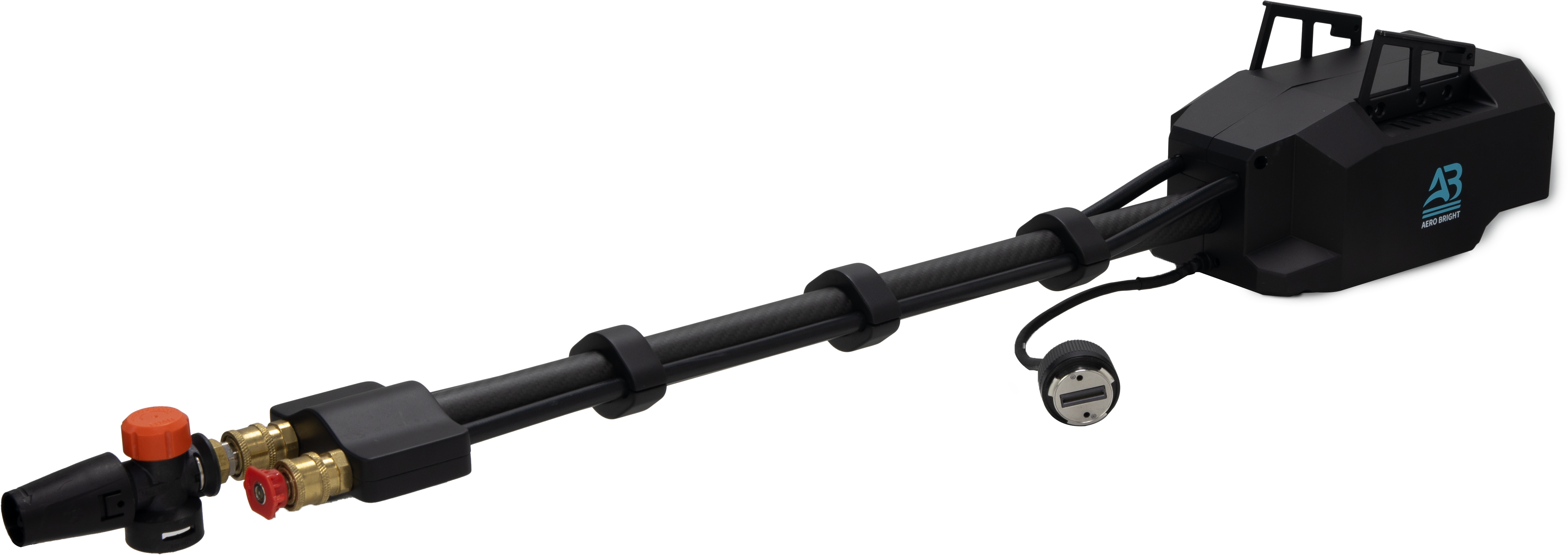 The system connects to a ground-based pump through a tethered high-pressure hose, delivering consistent water pressure and enabling high-efficiency cleaning operations. This makes it ideal for professional facade maintenance companies, industrial cleaning contractors, and facility management providers looking for safer and more cost-effective cleaning methods.