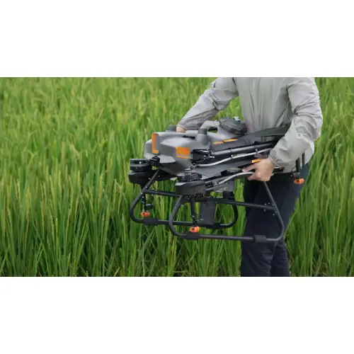 A carbon fiber composite body keeps the Agras T10 both lightweight and strong. It can also fold down by 70% for more convenient transportation. The battery and tank can be quickly attached and detached to make refilling more efficient.
