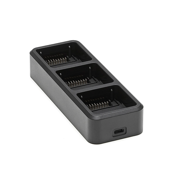 When connected to a designated charger, the DJI Mavic 3 Battery Charging Hub can expand the charging interface to three. The battery charging hub enhances efficiency by charging batteries in sequence according to their remaining power level, with more fully charged batteries receiving power first.