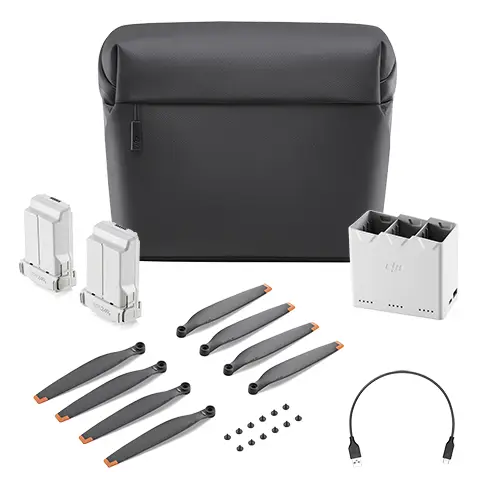 You want to fly longer. The DJI Mini 3 Pro Fly More Kit gives you two intelligent flight batteries, a two-way charging hub, a data cable, a shoulder bag, spare propellers, and screws. All the essentials. All in one. And guess what? It is a better deal than buying separately.