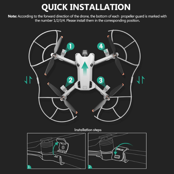 - Four propeller guard rings (labeled 1, 2, 3, and 4 for correct placement).