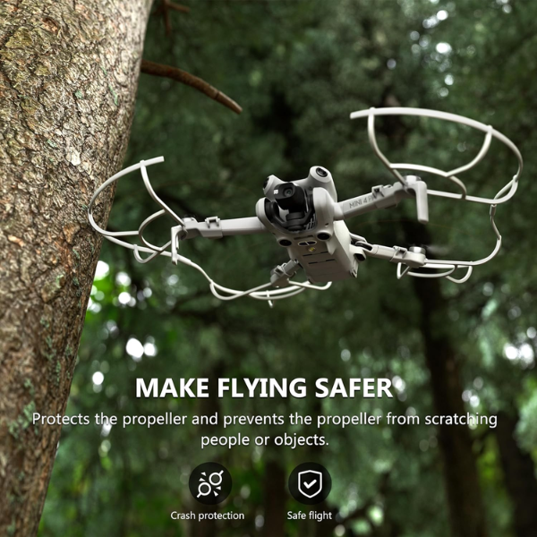 The STARTRC Propeller Guard for the DJI Mini 4 Pro is designed to enhance flight safety by protecting the drone's propellers during operation.