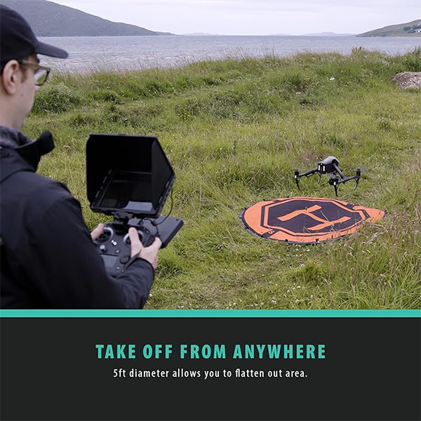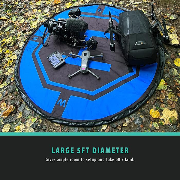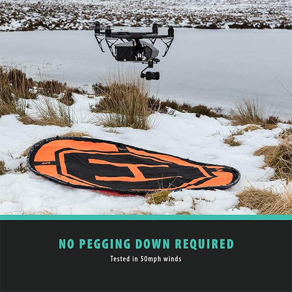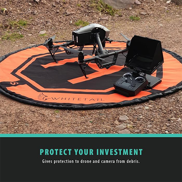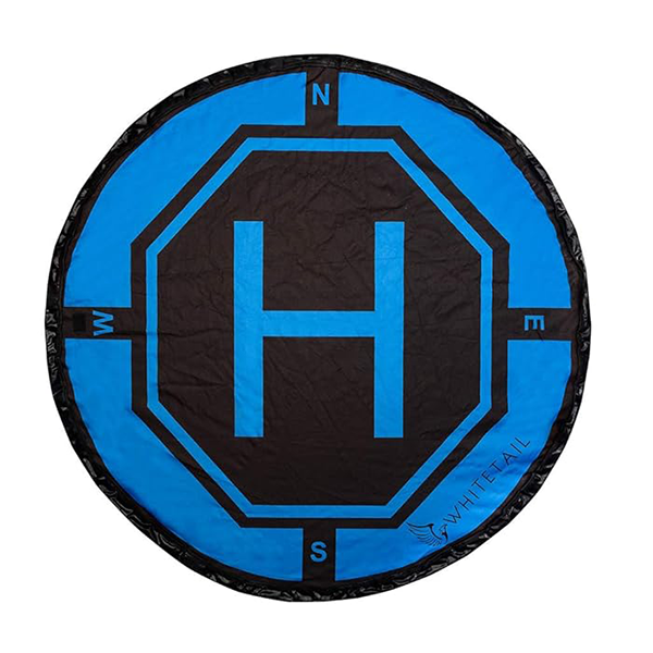 The Whitetail Weighted Drone Launch Pad has been carefully constructed to give a stable takeoff and landing platform on a variety of surfaces. Whether you're flying on grass, tarmac, sand, stones, or snow, this mat unfolds quickly and lays flat to provide a stable base for launching and landing your drone.Specially designed for stabilityThis takeoff and landing mat has been carefully tested and is specifically designed to handle windy situations. Its huge 5-foot circle gives adequate space for landing any drone while keeping it secure and stable even in tough settings.• Wind resistance evaluated at 50 miles per hour.• Large diameter (5 ft) suitable for all drone sizes.• 4 kg: Heavy weight for stabilityNo pegging down neededUnlike other launch pads, the Whitetail Weighted Drone Launch Pad does not require pegging down, even on tarmac or in deep snow. Its strong design keeps it from flicking up during takeoff or landing, and it has been tested to withstand downwash from large drone propellers in gusts of up to 50 mph.Professionals preferProfessionals worldwide rely on this landing mat to maintain a clean, professional image throughout operations. First impressions are important, and this mat delivers.Safeguard your investmentThe launch pad protects your drone and camera from debris during takeoff and landing, extending the life of your equipment.Safe from prop washingThe mat's weighted edges and large 5-foot diameter keep it firmly in place, eliminating edge lift from prop wash and assuring a safe and smooth landing every time.
